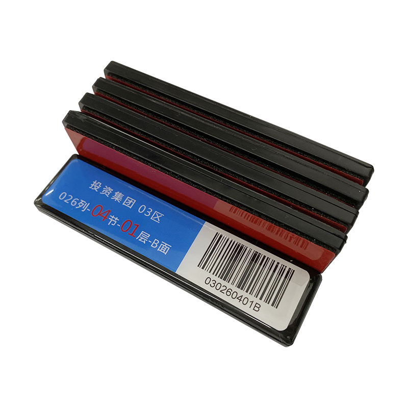 RFID图书层架标签,是为智能图书馆系统中的图书RFID标签识别模块,通过图书标签、图书层架及相应的读写器模块,可读取图书标签信息,包括图书名称、图书編号、图书类型及借阅情况等,可作为系统分拣依据,方便书籍管理。图书层架标签一般粘贴在图书货架上,可统一管理同一货架上的图书情况,通过滴胶处理,美观大方,并且加入了吸波材料,可避免金属货架对标签的影响。